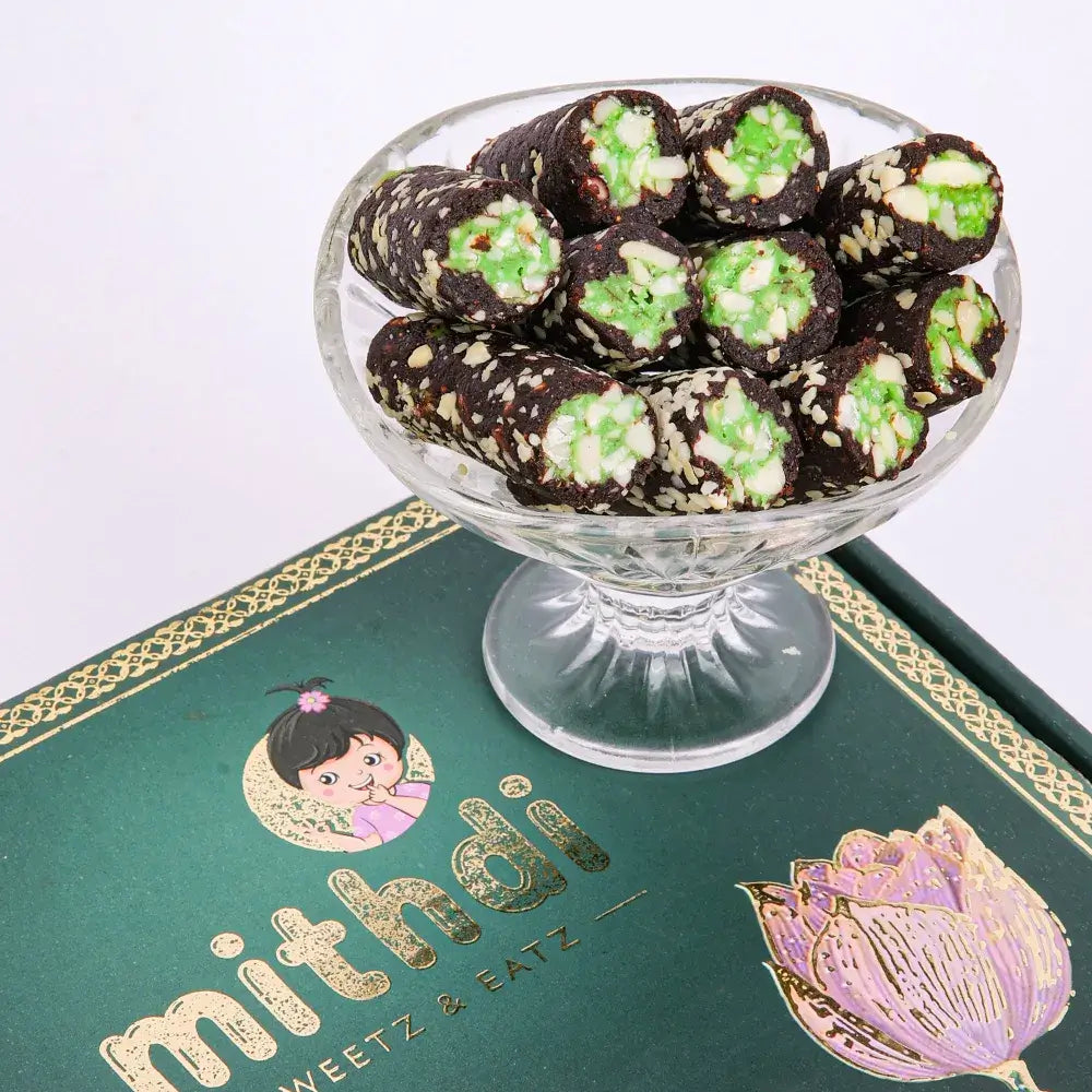 Each roll delivers a perfect balance of chewy figs and crunchy nuts, making it an ideal choice for festive gifting, celebrations, or serving to guests. Prepared using traditional methods without artificial colours or preservatives, Anjir Roll reflects purity, craftsmanship, and timeless taste.