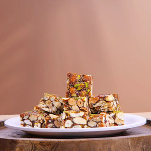 Anjeer Chikki – Fig Bite is a thoughtfully crafted sweet made for those who prefer natural sweetness and rich nutrition. Prepared using premium anjeer (figs), fried kaju and badam, pista, and khaskhas (poppy seeds), this chikki is gently bound with pure honey and cooked in pure ghee.