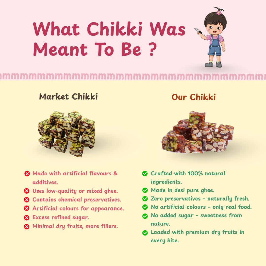 Each piece of Dubai Chikki reflects the finesse of authentic Gujarati craftsmanship blended with modern wellness, making it a guilt-free way to satisfy sweet cravings while fueling your day with natural goodness.
