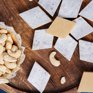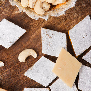 The classic favorite, Kaju Katli, made with pure cashew goodness and a smooth, velvety texture. A must-have for all festivals and family gatherings.