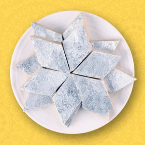 Finished with ethically sourced edible silver work, Kaju Katli is a symbol of celebration and elegance. Prepared using traditional methods without artificial flavours or preservatives, it is perfect for festivals, weddings, gifting, or simply enjoying a timeless sweet indulgence.
